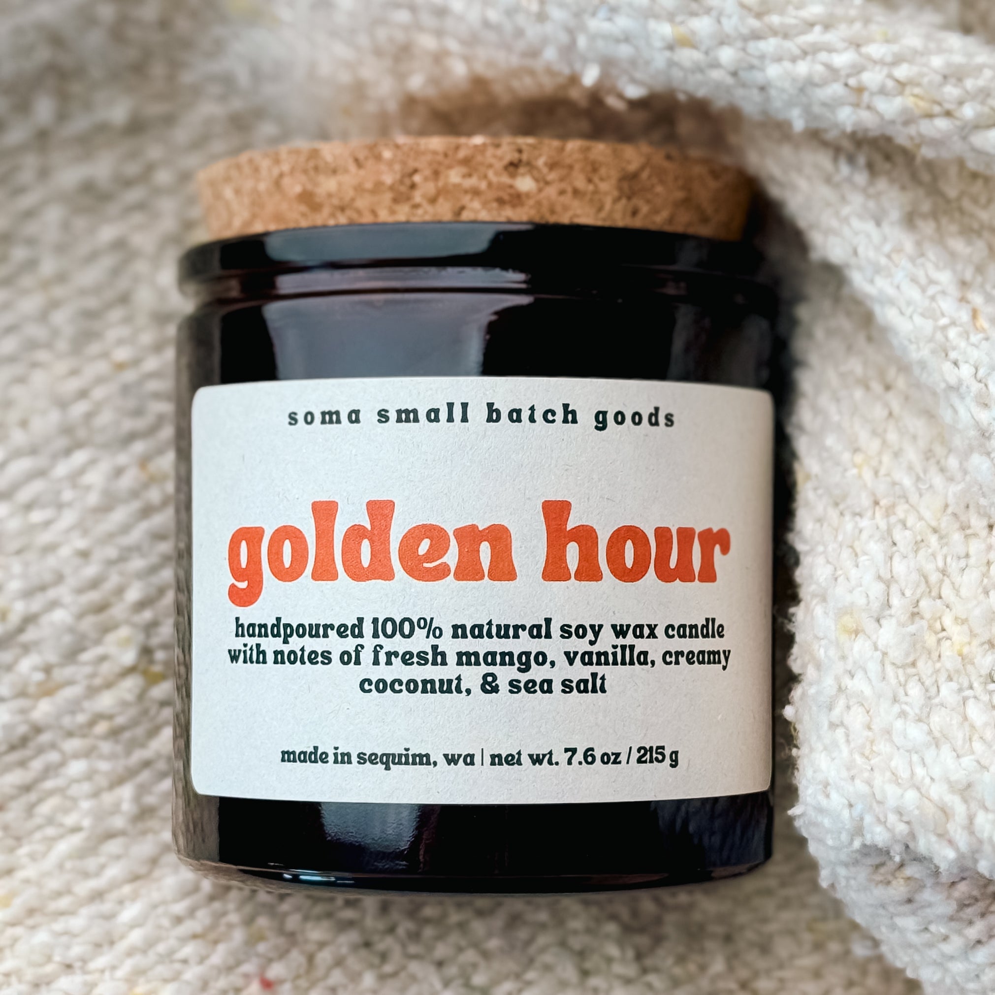 If you loved the Ocean Beach scent from years ago, you might just love Golden Hour, which is an updated custom SOMA Small Batch Goods scent with similar notes, but with an additional fragrant blend that includes locally crafted pure essential oil in each batch.