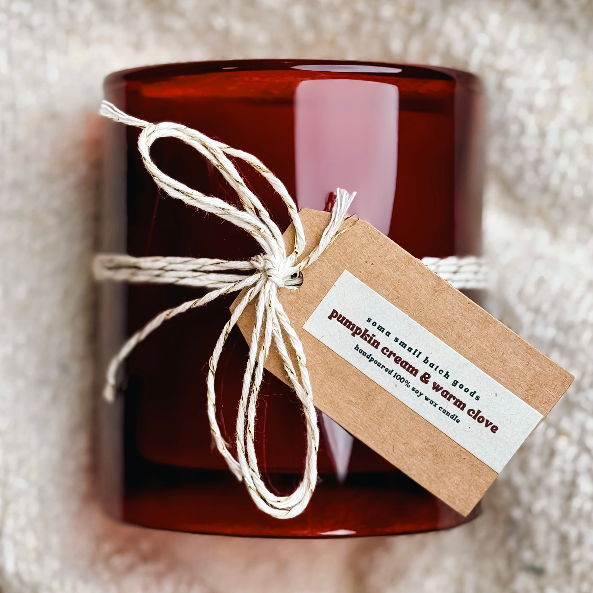 The comforting glow of a Pumpkin Cream & Warm Clove candle. ♥️ A custom SOMA Small Batch Goods blend, this scent is everything warm, cozy, and blissful. 🙏